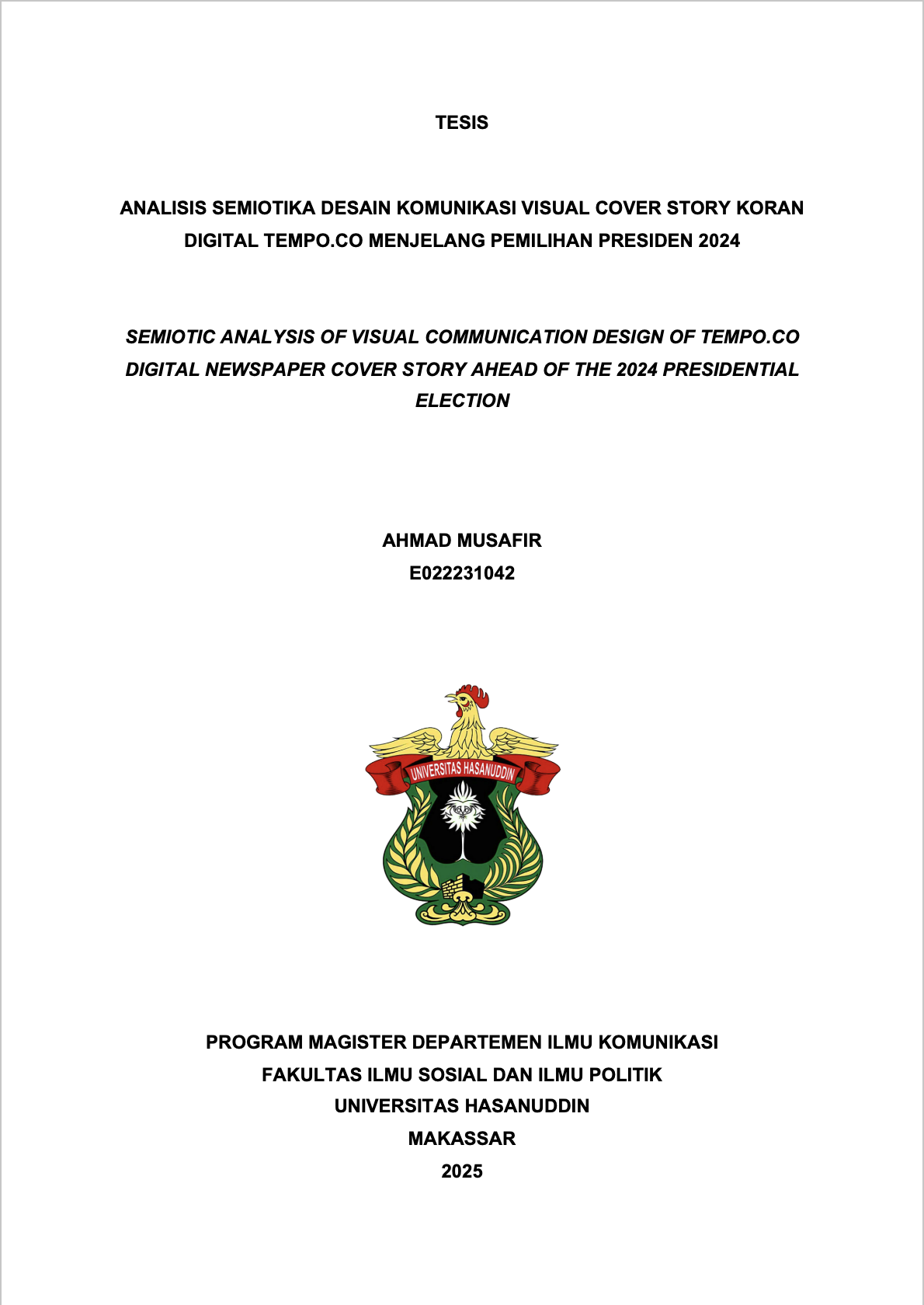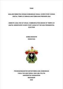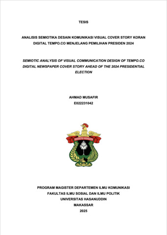 MUSAFIR, AHMAD (2025) ANALISIS SEMIOTIKA DESAIN KOMUNIKASI VISUAL COVER STORY KORAN DIGITAL TEMPO.CO MENJELANG PEMILIHAN PRESIDEN 2024 = SEMIOTIC ANALYSIS OF VISUAL COMMUNICATION DESIGN OF TEMPO.CO DIGITAL NEWSPAPER COVER STORY AHEAD OF THE 2024 PRESIDENTIAL ELECTION. Thesis thesis, UNIVERSITAS HASSANUDDIN.