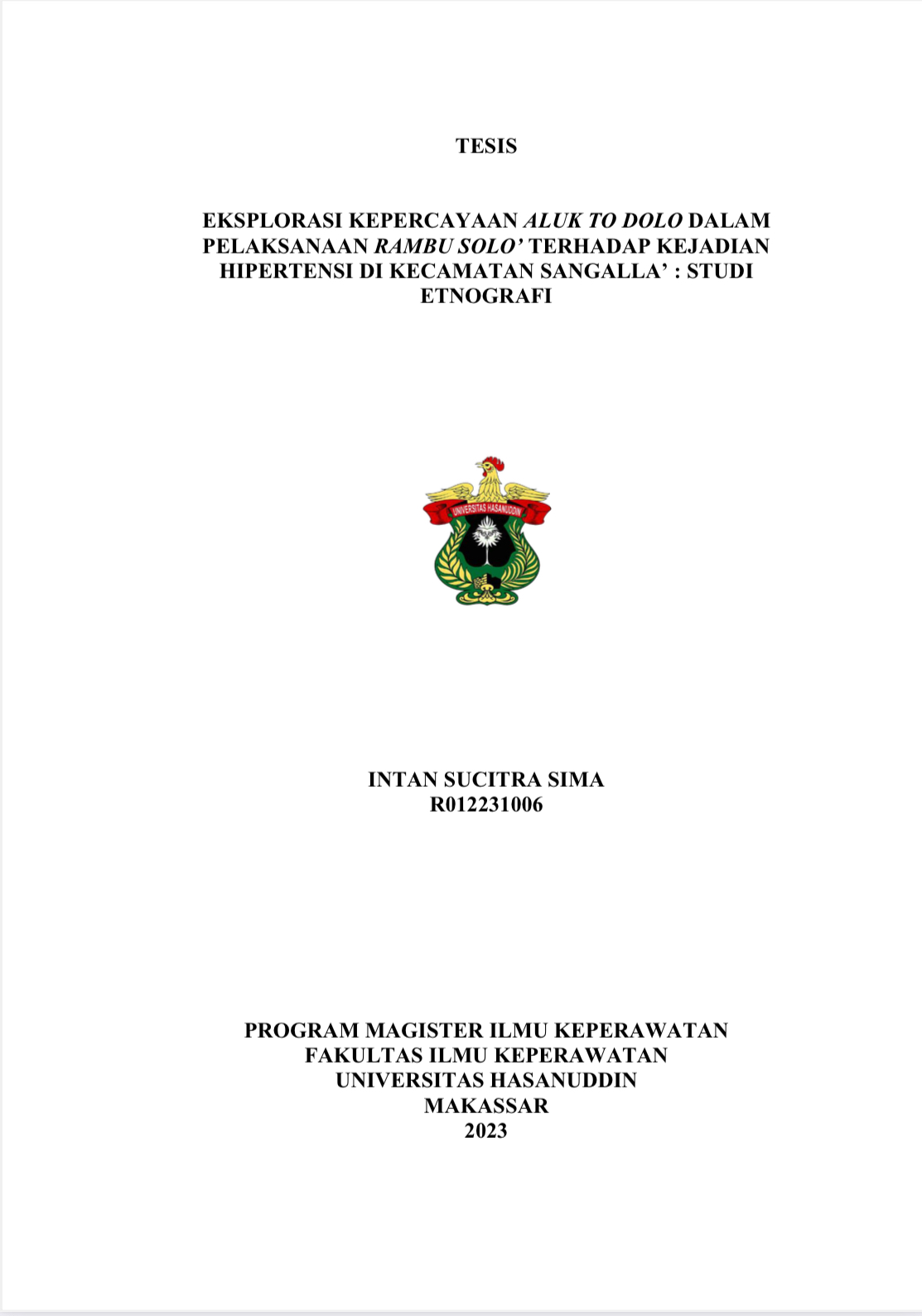 SIMA, INTAN SUCITRA (2024) Eksplorasi Kepercayaan Aluk To Dolo dalam Pelaksanaan Rambu Solo’ terhadapt Kejadian Hipertensi di Kecamatan Sangalla’ : Studi Etnografi = Exploration of Aluk To Dolo Belief in the Implementation of Rambu Solo’ towards Hypertension Incidents in Sangalla’ : Ethnographic Study. Skripsi thesis, Universitas Hasanuddin.