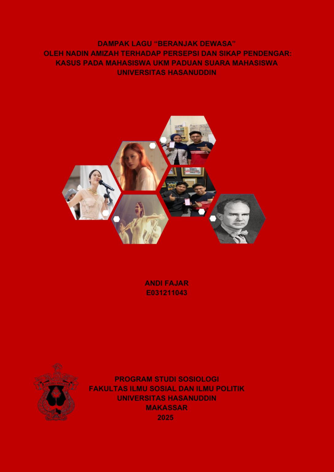 FAJAR, ANDI (2025) DAMPAK LAGU "BERANJAK DEWASA" OLEH NADIN AMIZAH TERHADAP PERSEPSI DAN SIKAP PENDENGAR: KASUS PADA MAHASISWA UKM PADUAN SUARA MAHASISWA UNIVERSITAS HASANUDDIN = IMPACT OF THE SONG “BERANJAK DEWASA” BY NADIN AMIZAH ON LISTENER PERCEPTIONS AND ATTITUDES: A CASE STUDY ON STUDENTS OF STUDENT CHOIR UKM HASANUDDIN UNIVERSITY. Skripsi thesis, UNIVERSITAS HASSANUDDIN.