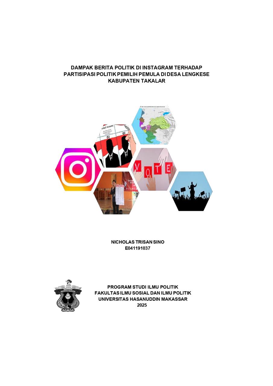 Sino, Nicholas Trisan (2025) DAMPAK BERITA POLITIK DI INSTAGRAM TERHADAP PARTISIPASI POLITIK PEMILIH PEMULA DI DESA LENGKESE KABUPATEN TAKALAR = THE IMPACT OF POLITICAL NEWS ON INSTAGRAM ON POLITICAL PARTICIPATION OF FIRST-TIME VOTERS IN LENGKESE VILLAGE, TAKALAR REGENCY. Skripsi thesis, UNIVERSITAS HASSANUDDIN.
