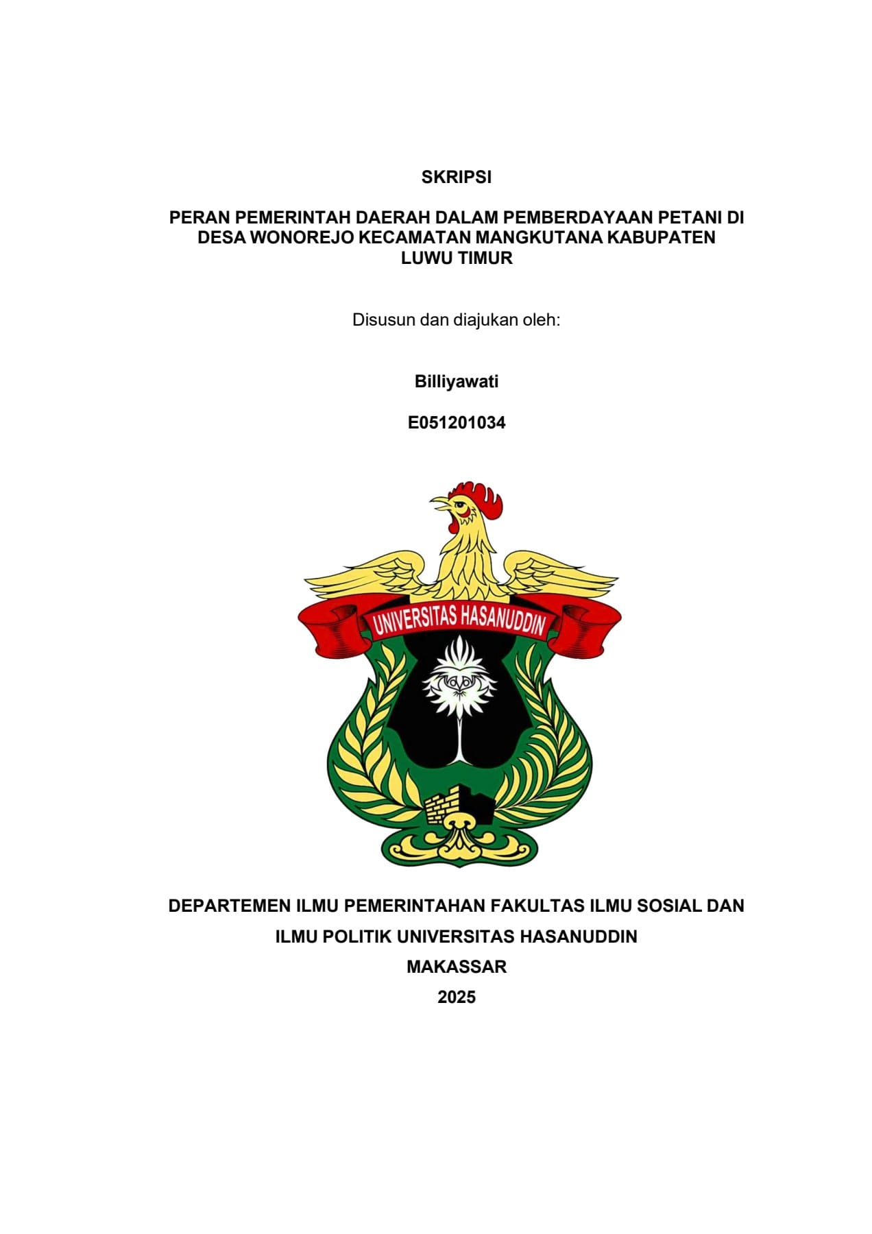 BILLIYAWATI, BILLIYAWATI (2025) Peran Pemerintah Daerah dalam Pemberdayaan Petani di Desa Wonorejo, Kecamatan Mangkutana, Kabupaten Luwu Timur = The Role of Local Government in Empowering Farmers in Wonorejo Village, Mangkutana District, East Luwu Regency. Skripsi thesis, Universitas Hasanuddin.