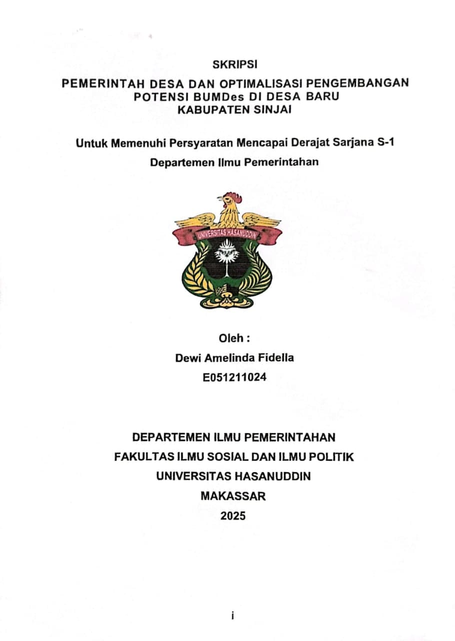 FIDELLA, DEWI AMELINDA (2025) Pemerintah Desa Dan Optimalisasi Pengembangan Potensi BUMDes Di Desa Baru Kabupaten Sinjai = Village Government and Optimization Of The Development Of BUMDes Potential In New Villages, Sinjai Regency. Skripsi thesis, Universitas Hasanuddin.