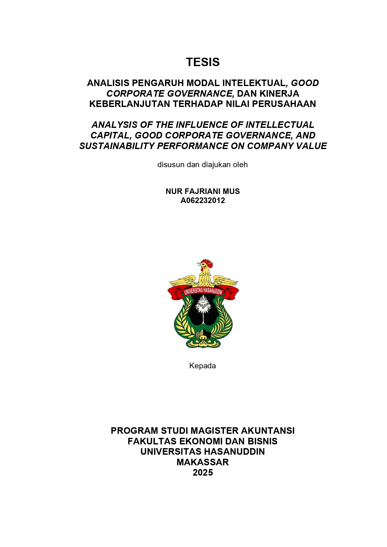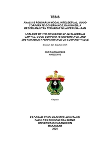 MUS, NUR FAJRIANI (2025) ANALISIS PENGARUH MODAL INTELEKTUAL, GOOD CORPORATE GOVERNANCE, DAN KINERJA KEBERLANJUTAN TERHADAP NILAI PERUSAHAAN = ANALYSIS OF THE INFLUENCE OF INTELLECTUAL CAPITAL, GOOD CORPORATE GOVERNANCE, AND SUSTAINABILITY PERFORMANCE ON COMPANY VALUE. Thesis thesis, Universitas Hasanuddin.