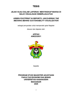 AFIFAH, AFIFAH (2025) Jejak Hijau dalam Laporan: Menyingkap Makna dibalik Visualisasi Keberlanjutan = Green Footprint in Reports: Uncovering The Meaning Behind Sustainability Visualization. Thesis thesis, Universitas Hasanuddin.