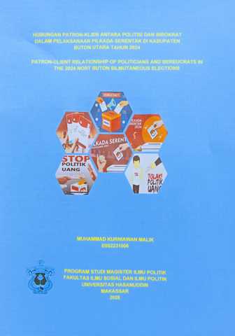 MALIK, MUHAMMAD KURNIAWAN (2025) Hubungan patron-klien antara politisi dan birokrat dalam pelaksanaan pilkada serentak di kabupaten buton utara tahun 2024 = Patron-client relationship between politicians and bureaucrats in the implementation of simultaneous regional elections in North Buton Regency 2024. Thesis thesis, Universitas Hasanuddin.
