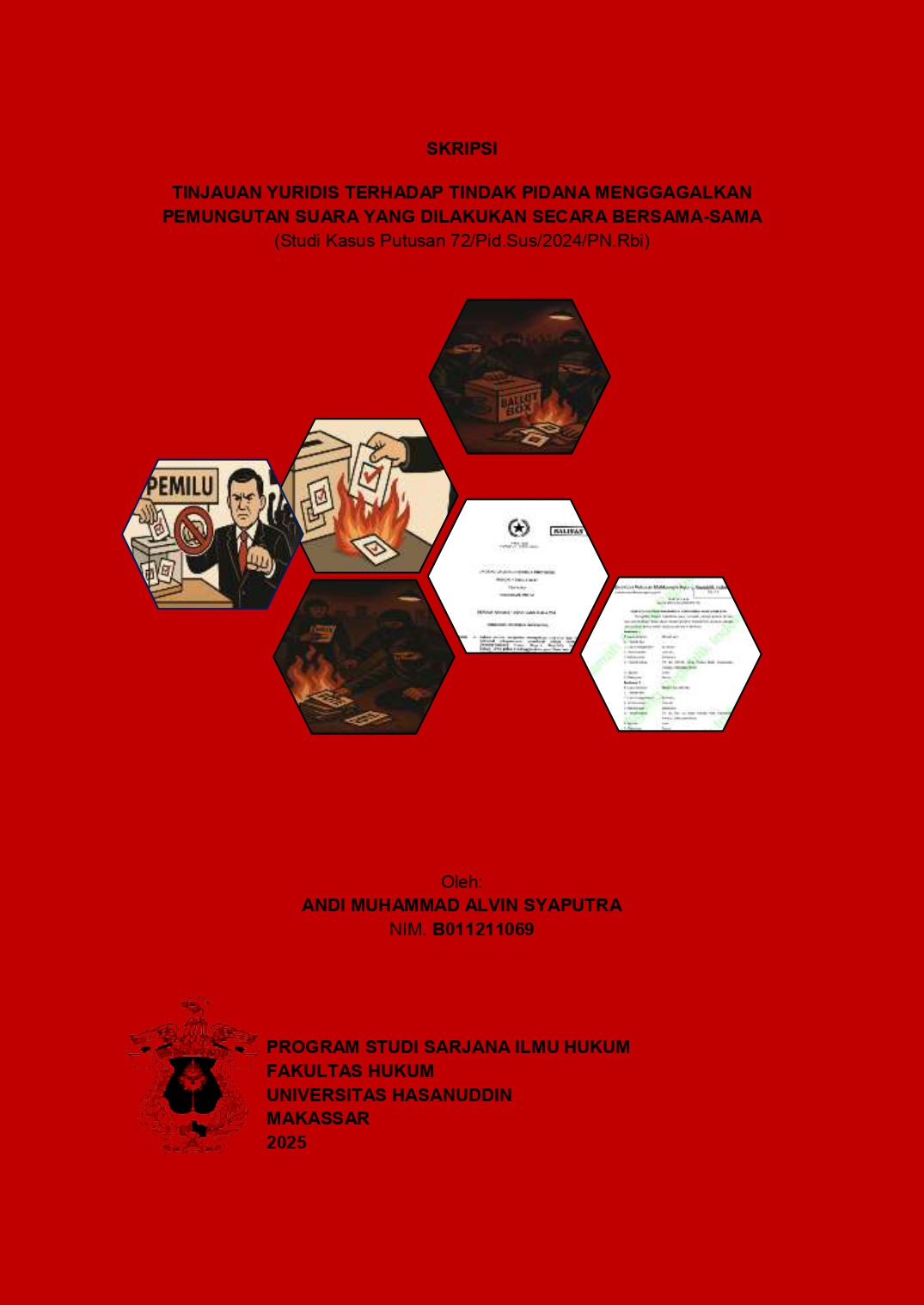 SYAPUTRA, ANDI MUHAMMAD ALVIN (2025) Tinjauan Yuridis Terhadap Tindak Pidana Menggagalkan Pemungutan Suara Yang Dilakukan Secara 72/Pid.Sus/2024/PN.Rbi) = Juridical Review of the Criminal Act of Collectively Disrupting a Vote Tally (A Case Study of Decision No. 72/Pid.Sus/2024/PN.Rbi). Skripsi thesis, UNIVERSITAS HASANUDDIN.