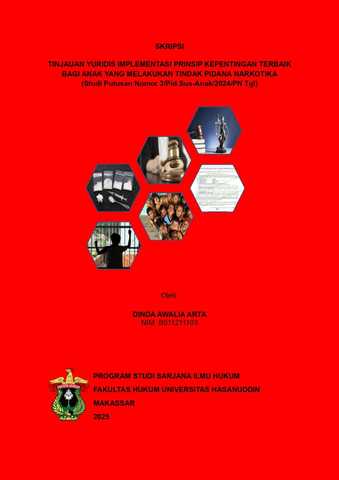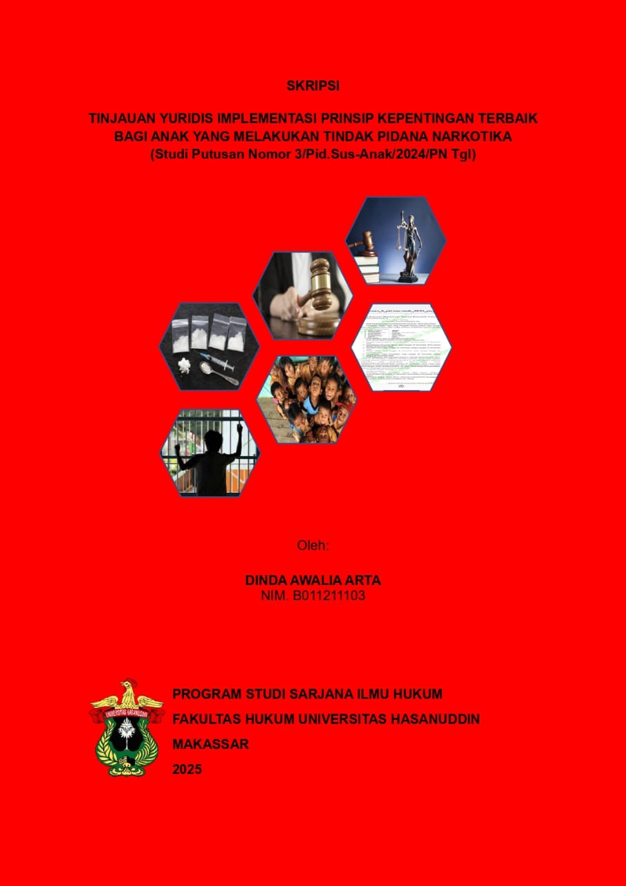 ARTA, DINDA AWALIA (2025) Tinjauan Yuridis Implementasi Prinsip Kepentingan Terbaik Bagi Anak Yang Melakukan Tindak Pidana Narkotika (Studi Putusan Nomor 3/Pid.Sus-Anak/2024/PN Tgl) = Legal Review Of The Implementation Of The Best Interest Principle For The Children Commiting Narcotics Crimes (Study Of Decision Number 3/Pid.Sus-Anak/2024/PN Tgl). Skripsi thesis, UNIVERSITAS HASANUDDIN MAKASSAR.