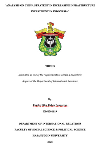 PANGARIAN, EUNIKE FILEA KABIU (2025) Analisis Strategi China dalam Meningkatkan Investasi Infrastruktur di Indonesia = Analysis on China Strategy in Increasing Infrastructure Investment in Indonesia. Skripsi thesis, Universitas Hasanuddin.