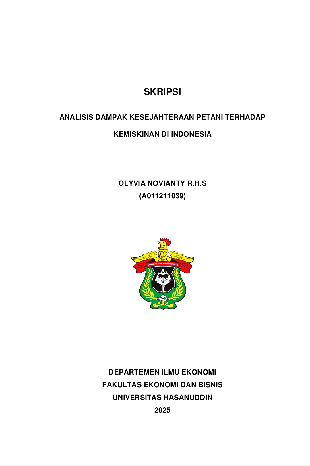 NOVIANTY. R.H.S, OLYVIA (2025) Analisis Dampak Kesejahteraan Petani terhadap Kemiskinan di Indonesia = An Analysis of the Impact of Farmer Welfare on Poverty in Indonesia. Skripsi thesis, Universitas Hasanuddin.