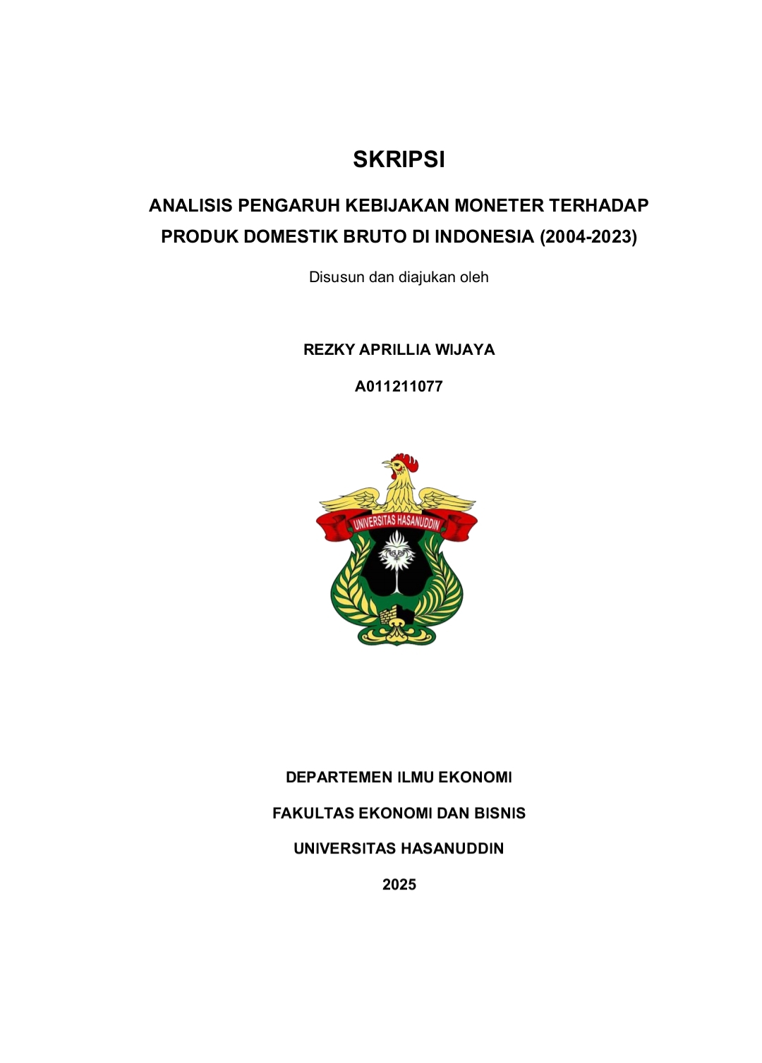 WIJAYA, REZKY APRILLIA (2025) Analisis Kebijakan Moneter Terhadap Produk Domestik Bruto di Indonesia (2004-2023) = ANALYSIS OF THE INFLUENCE OF MONETARY POLICY ON INDONESIA'S GROSS DOMESTIC PRODUCT (2004-2023). Skripsi thesis, Universitas Hasanuddin.