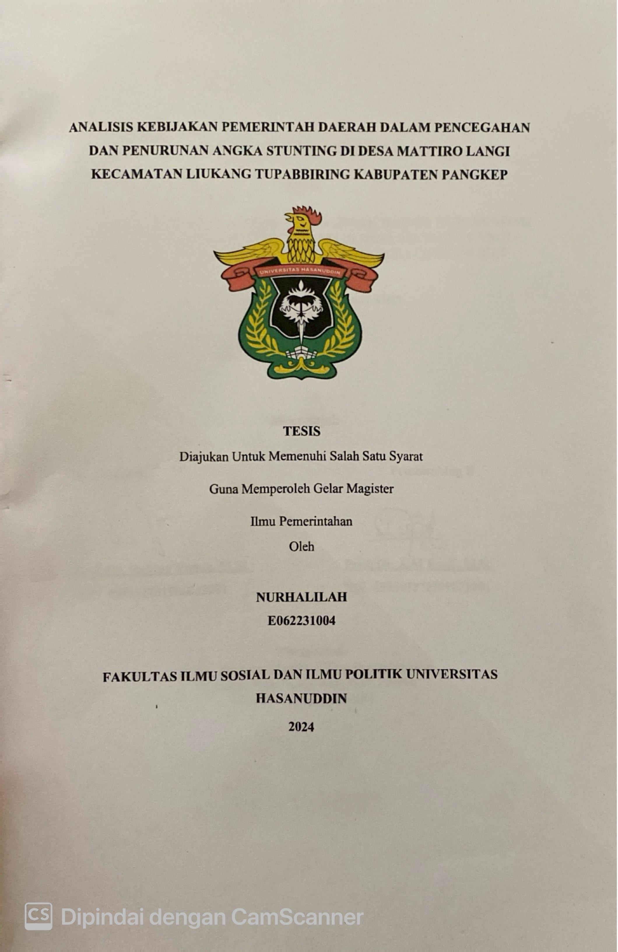 NURHALILAH, NURHALILAH (2025) Analisis Kebijakan Pemerintah Daerah Dalam Pencegahan dan Penurunan Angka Stunting di Desa Mattiro Langi, Kecamatan Liukang Tupabbiring, Kabupaten Pangkep. = Analysis of Local Government Policy in Preventing and Reducing Stunting in Mattiro Langi, Liukang Tupabbiring Distrik, Pangkep Regency. Thesis thesis, Universitas Hasanuddin.