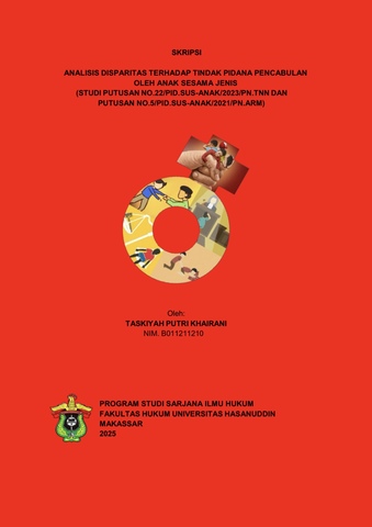 KHAIRANI, TASKIYAH PUTRI (2025) ANALISIS DISPARITAS TERHADAP TINDAK PIDANA PENCABULAN OLEH ANAK SESAMA JENIS (STUDI PUTUSAN NO.22/PID.SUS-ANAK/2023/PN.TNN DAN PUTUSAN NO.5/PID.SUS-ANAK/2021/PN.ARM) = AN ANALYSIS OF SENTENCING DISPARITIES IN SAME-SEX SEXUAL ABUSE CRIMES COMMITTED BY MINORS (CASE STUDY OF VERDICT NO.22/PID.SUS-ANAK/2023/PN.TNN AND VERDICT NO.5/PID.SUS-ANAK/2021/PN.ARM). Skripsi thesis, UNIVERSITAS HASANUDDIN MAKASSAR.