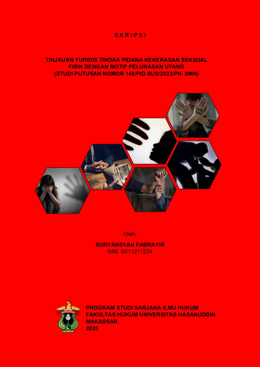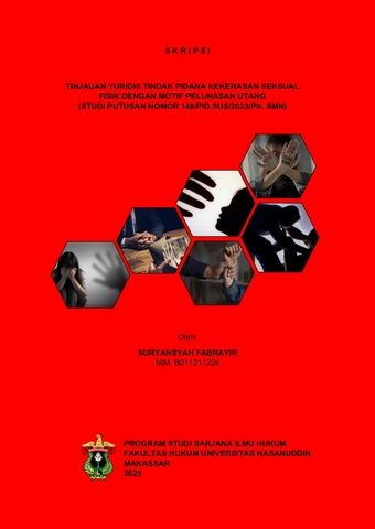FABRAYIR, SURYANSYAH (2025) TINJAUAN YURIDIS TINDAK PIDANA KEKERASAN SEKSUAL FISIK DENGAN MOTIF PELUNASAN UTANG (STUDI PUTUSAN NOMOR 148/PID.SUS/2023/PN. SMN) = Juridical Review of the Criminal Act of Physical Sexual Violence with the Motive of Debt Repayment (Case Study of Decision Number 148/Pid.Sus/2023/PN. SMN). Skripsi thesis, UNIVERSITAS HASANUDDIN MAKASSAR.