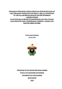 MARIANA, FITRIA DEWI (2025) PENGARUH PERCEIVED USEFULNESS DAN PERCEIVED EASE OF USE TERHADAP PRODUKTIVITAS KERJA MELALUI INTENTION TO USE DALAM MENGGUNAKAN SISTEM INFORMASI LABORATORIUM DI KANTOR BALAI BESAR STANDARDISASI DAN PELAYANAN JASA INDUSTRI HASIL PERKEBUNAN, MINERAL LOGAM, DAN MARITIM (BBSPJIHPMM) = THE INFLUENCE OF PERCEIVED USEFULNESS AND PERCEIVED EASE OF USE ON WORK PRODUKTIVITY THROUGH INTENTION TO USE IN USING LABORATORY INFORMATION SYSTEMS AT THE OFFICE OF CENTER FOR INDUSTRIAL STANDARDIZATION AND SERVICES OF PLANTATION-BASED PRODUCTS, METALLIC MINERALS, AND MARITIME (BBSPJIHPMM). Thesis thesis, Universitas Hasanuddin.