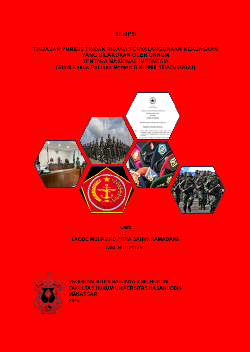 RAMADANA, LAODE MUHAMAD FITRA SAHIRI (2025) TINJAUAN YURIDIS TINDAK PIDANA PENYALAHGUNAAN KEKUASAAN YANG DILAKUKAN OLEH OKNUM TENTARA NASIONAL INDONESIA (Studi Kasus Putusan Nomor: 8-K/PMIII-15/AD/III/2023) = A juridical review of the criminal act of abuse of power committed by a member of the Indonesian National Army (Case Study of DecisionNNumber: 8-K/PMIII15/AD/III/2023). Skripsi thesis, UNIVERSITAS HASANUDDIN MAKASSAR.