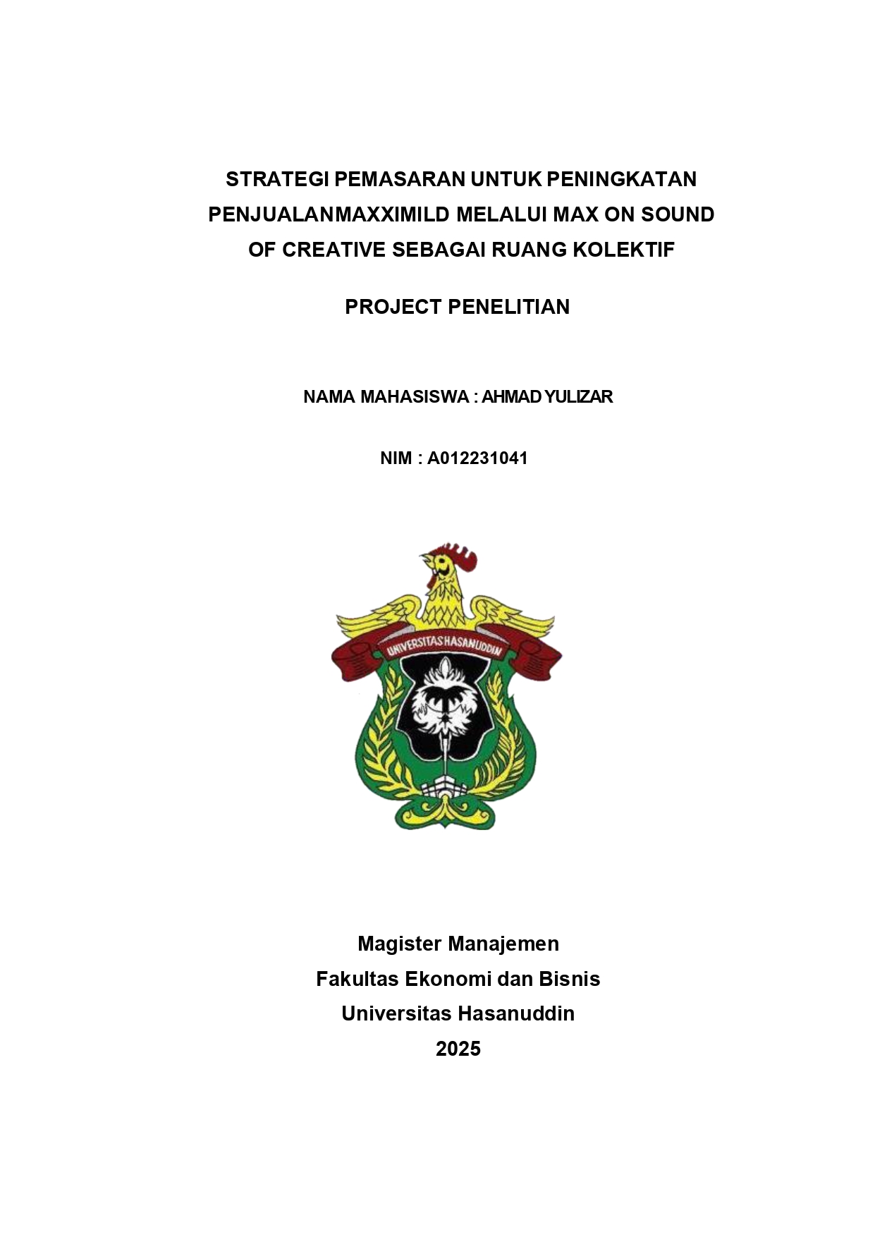 YULIZAR, AHMAD (2025) STRATEGI PEMASARAN UNTUK PENINGKATAN PENJUALAN MAXXIMILD MELALUI MAX ON SOUND OF CREATIVE SEBAGAI RUANG KOLEKTIF = MARKETING STRATEGY TO INCREASE SALES OF MAXXIMILD THROUGH MAX ON SOUND OF CREATIVE AS A COLLECTIVE SPACE. Thesis thesis, Universitas Hasanuddin.