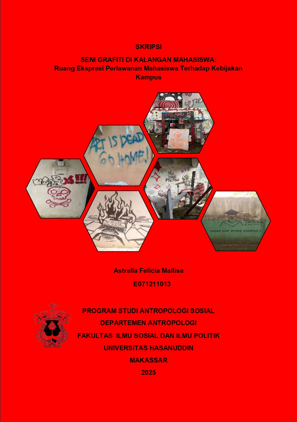 MALLISA, ASTRELLA FELICIA (2025) Seni Grafiti di Kalangan Mahasiswa: Ruang Ekspresi Perlawanan Mahasiswa Terhadap Kebijakan Kampus = Graffiti Art Among Students: A Space for Student Resistance Against Campus Policies. Skripsi thesis, Universitas Hasanuddin.