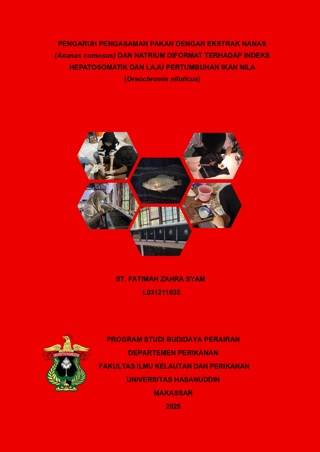 SYAM, ST. FATIMAH ZAHRA (2025) Pengaruh Pengasaman Pakan Dengan Ekstrak Nanas (Ananas comosus) dan Natrium Diformat Terhadap Indeks Hepatosomatik dan Laju Pertumbuhan Ikan Nila (Oreochromis niloticus) = The Effect of Feed Acidification With Peneapple (Ananas comosus) Extract and Sodium Diformate on the Hepatosomatic Index and Growthof Nile Tilapia (Oreochromis niloticus). Skripsi thesis, Universitas Hasanuddin.