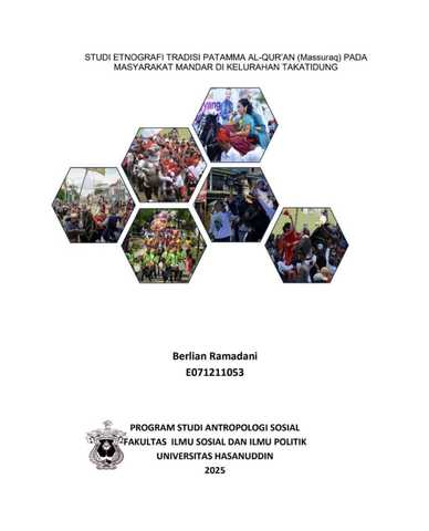 RAMADANI, BERLIAN (2025) STUDI ETNOGRAFI TRADISI PATAMMA AL-QUR’AN (Massuraq) PADA MASYARAKAT MANDAR DI KELURAHAN TAKATIDUNG = ETHNOGRAPHIC STUDY OF THE PATAMMA AL-QUR'AN (Massuraq) TRADITION IN THE MANDAR COMMUNITY IN TAKATIDUNG VILLAGE. Skripsi thesis, Universitas Hasanuddin.