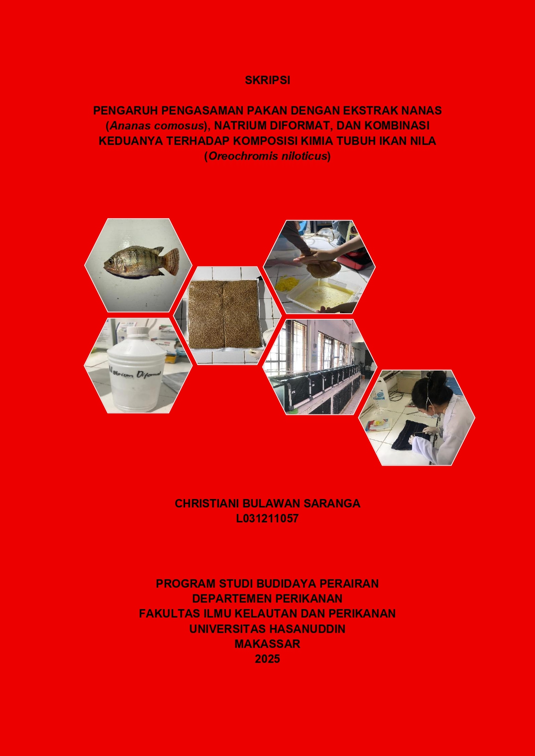 SARANGA, CHRISTIANI BULAWAN (2025) Pengaruh Pengasaman Pakan Dengan Ekstrak Nanas (Ananas comosus), Natrium Diformat, Dan Kombinasi Keduanya Terhadap Komposisi Kimia Tubuh Ikan Nila (Oreochromis niloticus)= The Effect of Feed Acidification with Pineapple (Ananas comosus) Extract, Sodium Diformate, and a Combination of Both on the Chemical Composition of the Body of Nile Tilapia (Oreochromis niloticus). Skripsi thesis, Universitas Hasanuddin.