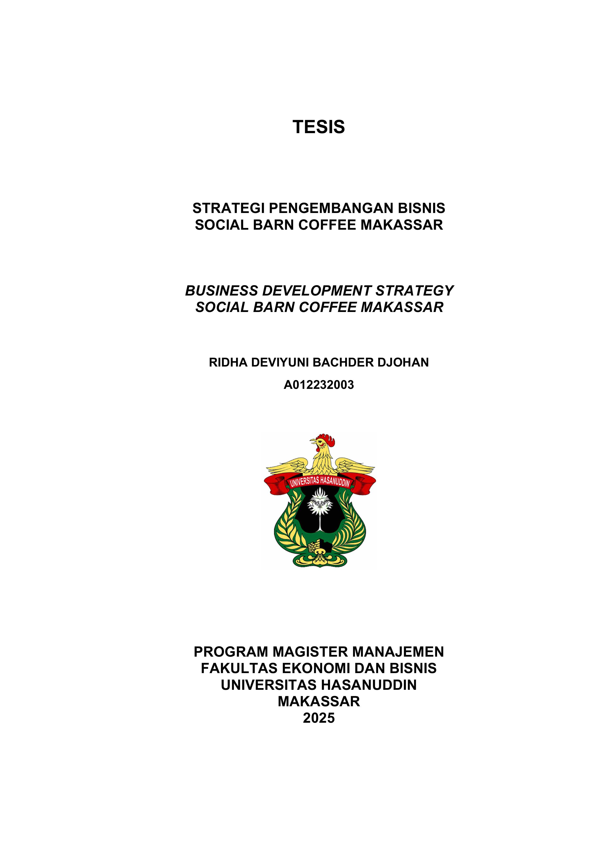 DJOHAN, RIDHA DEVIYUNI BACHDER (2025) Strategi Pengembangan Bisnis Social Barn Coffee Makassar = Business Development Strategy Social Barn Coffee Makassar. Thesis thesis, Universitas Hasanuddin.