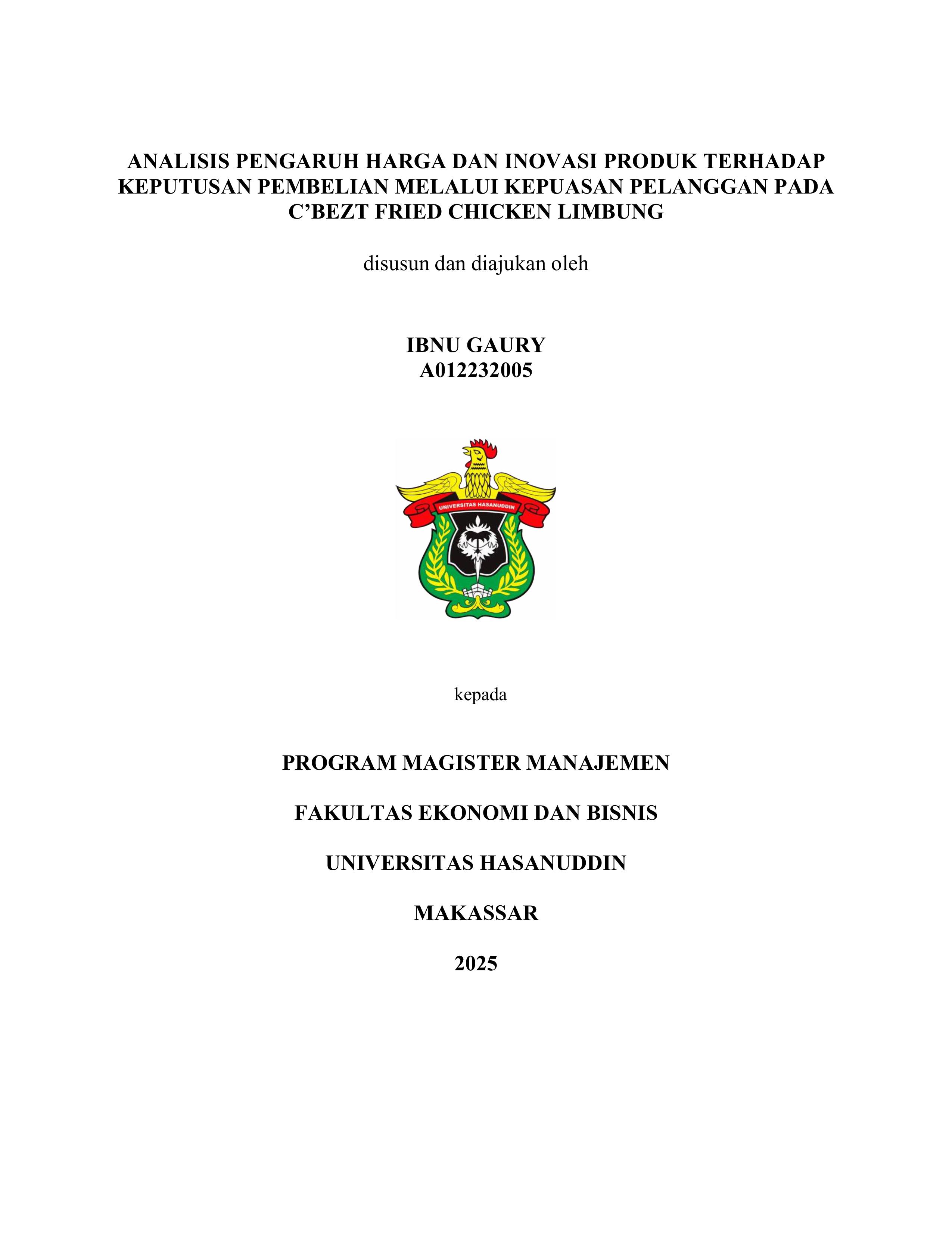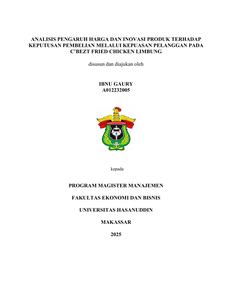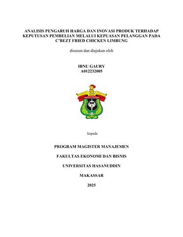 GAURY, IBNU (2025) Analisis Pengaruh Harga dan Inovasi Produk Terhadap Keputusan Pembelian Melalui Kepuasan Pelanggan Pada C'bezt Fried Chicken Limbung = Analysis of the Influence of Price and Product Innovation on Purchasing Desicions Through Customer Satisfaction At C'bezt Fried Chicken Limbung. Thesis thesis, Universitas Hasanuddin.
