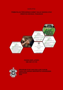 SYADZA NUR LATHIFA (B011211378). PEMBATALAN PERKAWINAN AKIBAT SALAH SANGKA ATAS ORIENTASI SEKSUAL PASANGAN. Dibimbing oleh Fauzia P. Bakti selaku Dosen Pembimbing. Latar Belakang. Penelitian ini dilatar belakangi dari fenomena ketidakterbukaan orientasi seksual pasangan yang menjadi dasar permohonan pembatalan perkawinan. Ketidakjelasan batasan normatif mengenai frasa “salah sangka” dalam Pasal 27 ayat (2) Undang-Undang Perkawinan jo. Pasal 72 ayat (2) Kompilasi Hukum Islam menimbulkan perbedaan tafsir hakim dalam memutus perkara pembatalan perkawinan akibat disorientasi seksual, sehingga menimbulkan potensi ketidakpastian hukum.Tujuan Penelitian. Penelitian ini bertujuan untuk menganalisis apakah ketidakterbukaan mengenai orientasi seksual dapat dikategorikan sebagai salah sangka dalam hukum perkawinan serta bagaimana hakim menafsirkan salah sangka atas orientasi seksual dalam pembatalan perkawinan. Metode Penelitian. Penelitian ini menggunakan metode penelitian hukum normatif dengan pendekatan perundang-undangan dan pendekatan kasus. Bahan hukum terdiri dari peraturan perundang-undangan, Al-Qur’an, hadist, buku, jurnal, serta putusan pengadilan yang kemudian dianalisis secara preskriptif. Hasil Penelitian menunjukkan bahwa (1) ketidakterbukaan orientasi seksual dapat dikategorikan sebagai salah sangka mengenai diri suami atau istri karena menyangkut persetujuan fundamental sebelum melangsungkan perkawinan; (2) terdapat perbedaan tafsir hakim, sebagian hakim mengabulkan permohonan pembatalan dengan menafsirkan orientasi seksual sebagai bagian dari “diri”, sementara hakim lain menolak permohonan dengan alasan orientasi seksual termasuk kepribadian yang tidak dapat dijadikan dasar salah sangka. Kesimpulan. Dalam hukum Islam, homoseksual dipandang sebagai al-fahisyah (jarimah), sehingga ketidakterbukaan orientasi seksual pasangan dapat menimbulkan salah sangka dan menjadi dasar pembatalan perkawinan menurut Pasal 27 ayat (2) UU Perkawinan jo. Pasal 72 ayat (2) KHI. Namun, UU Perkawinan tidak menjelaskan secara tegas batasan “salah sangka”, sehingga hakim berbeda dalam menafsirkan: ada yang menganggap orientasi seksual bagian dari “diri” dan mengabulkan pembatalan (PA Bantul & PA Jember), sementara yang lain menolaknya karena dianggap hanya aspek kepribadian (PA Surabaya). Perbedaan tafsir ini menimbulkan ketidakpastian hukum dan potensi ketidakadilan bagi pihak yang dirugikan.
