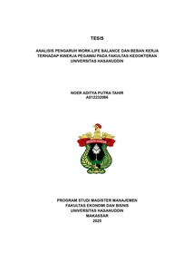 TAHIR, NOER ADITYA PUTRA (2025) Analisis Pengaruh Work-Life Balance dan Beban Kerja Terhadap Kinerja Pegawai Fakultas Kedokteran Universitas Hasanuddin = Analysis of The Effect of Work-Life Balance and Workload on Employee Performance at The Faculty of Medicine, Hasanuddin University. Thesis thesis, Universitas Hasanuddin.