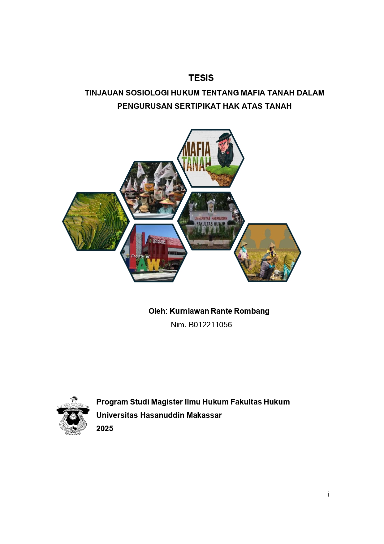 BOMBANG, KURNIAWAN RANTE (2025) TINJAUAN SOSIOLOGI HUKUM TENTANG MAFIA TANAH DALAM PENGURUSAN SERTIPIKAT HAK ATAS TANAH = LEGAL SOCIOLOGICAL REVIEW OF THE LAND MAFIA IN MANAGEMENT OF LAND RIGHTS CERTIFICATES. Skripsi thesis, UNIVERSITAS HASANUDDIN MAKASSAR.
