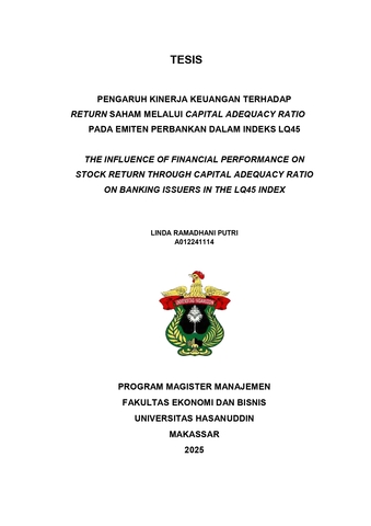 PUTRI, LINDA RAMADHANI (2025) Pengaruh Kinerja Keuangan Terhadap Return Saham Melalui Capital Adequacy Ratio Pada Emiten Perbankan Dalam Indeks LQ45 = The Influence Of Financial Performance On Stock Return Through Capital Adequacy Ratio On Banking Issuers In the LQ45 Index. Thesis thesis, Universitas Hasanuddin.