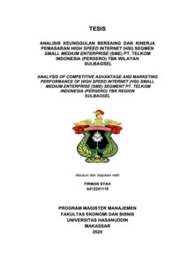 SYAH, FIRMAN (2025) Analisis Keunggulan Bersaing dan Kinerja Pemasaran High Speed Internet (HSI) Segmen Small Medium Enterprise (SME) PT. Telkom Indonesia (Persero) Tbk Wilayah Sulbagsel = Analysis of Competitive Advantage and Marketing Performance of High Speed Internet (HSI) Small Medium Enterprise (SME) Segment PT. Telkom Indonesia (Persero) Tbk Region Sulbagsel. Thesis thesis, Universitas Hasanuddin.