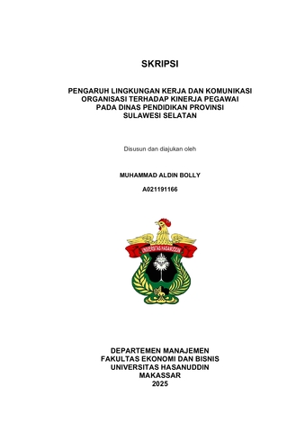 Bolly, Muhammad Aldin (2025) PENGARUH LINGKUNGAN KERJA DAN KOMUNIKASI ORGANISASI TERHADAP KINERJA PEGAWAI PADA DINAS PENDIDIKAN PROVINSI SULAWESI SELATAN = The Influence of Work Environment and Organizational Communication on Employee Performance at the Provincial Education Office of South Sulawesi. Skripsi thesis, Universitas Hasanuddin.