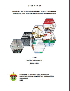 PONGOLIU, ADE FISTI (2025) REFORMULASI PERATURAN TENTANG PENYELENGGARAAN JAMINAN SOSIAL KESEHATAN DALAM PELAYANAN PUBLIK = REFORMULATION OF REGULATIONS ON THE IMPLEMENTATION OF SOCIAL HEALTH SECURITY IN PUBLIC SERVICES. Disertasi thesis, UNIVERSITAS HASANUDDIN MAKASSAR.