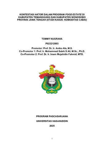NUGRAHA, TOMMY (2025) Kontestasi Aktor Dalam Program Food Estate Di Kabupaten Temanggung Dan Kabupaten Wonosobo Provinsi Jawa Tengah (Studi Kasus: Komoditas Cabai) = Actor Contestation in the Food Estate Program in Temanggung and Wonosobo Regencies, Central Java Province (Case Study: Chili Commodity). Disertasi thesis, Universitas Hasanuddin.