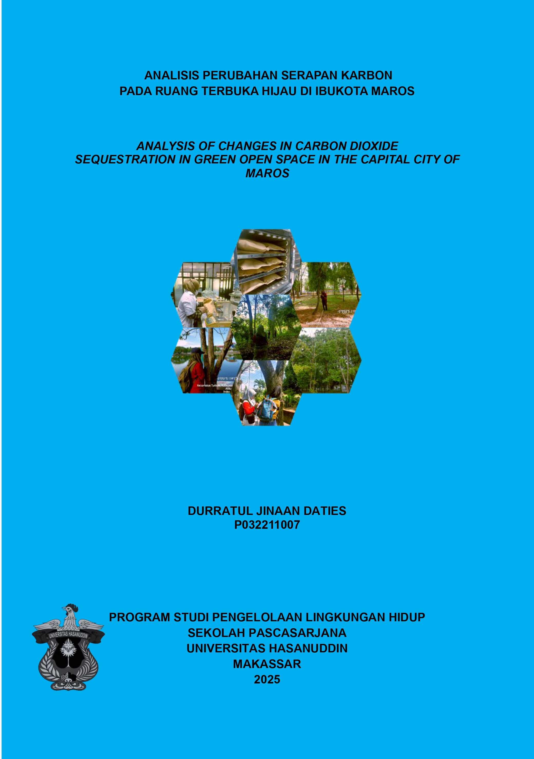 DATIES, DURRATUL JINAAN (2025) ANALISIS PERUBAHAN SERAPAN KARBON PADA RUANG TERBUKA HIJAU DI IBUKOTA MAROS = ANALYSIS OF CHANGES IN CARBON DIOXIDE SEQUESTRATION IN GREEN OPEN SPACE IN THE CAPITAL CITY OF MAROS. Thesis thesis, Universitas Hasanuddin.