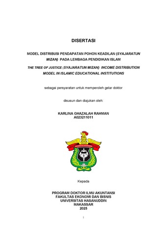 RAHMAN, KARLINA GHAZALAH (2025) MODEL DISTRIBUSI PENDAPATAN POHON KEADILAN (SYAJARATUN MIZAN) PADA LEMBAGA PENDIDIKAN ISLAM = THE TREE OF JUSTICE (SYAJARATUN MIZAN) EQUITABLE INCOME DISTRIBUTION MODEL IN ISLAMIC EDUCATIONAL INSTITUTIONS. Disertasi thesis, Universitas Hasanuddin.