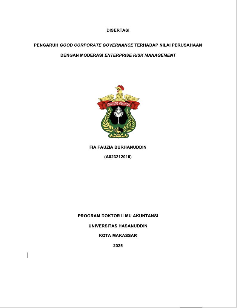 BURHANUDDIN, FIA FAUZIA (2025) PENGARUH GOOD CORPORATE GOVERNANCE TERHADAP NILAI PERUSAHAAN DENGAN MODERASI ENTERPRISE RISK MANAGEMENT = The Effect of Good Corporate Governance on Firm Value with Enterprise Risk Management as a Moderating Variable. Disertasi thesis, Universitas Hasanuddin.