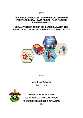 MAHENDRA, MOH. DIMAS (2025) PERLINDUNGAN HUKUM TERHADAP KONSUMEN DARI PENYALAHGUNAAN DATA PRIBADI PADA FINTECH PINJAMAN ONLINE = LEGAL PROTECTION FOR CONSUMERS AGAINST THE MISUSE OF PERSONAL DATA IN ONLINE LENDING FINTECH. Thesis thesis, UNIVERSITAS HASANUDDIN MAKASSAR.