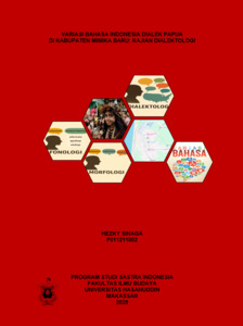 HEZKY SINAGA. Variasi Bahasa Indonesia Dialek Papua Di Kabupaten Mimika Baru: Kajian Dialektologi (dibimbing oleh Ikhwan M. Said) Penelitian ini mengkaji variasi bahasa Indonesia dialek Papua yang ada di Kabupaten Mimika Baru. penelitian ini menarik karena menyoroti fenomena pembentukan dialek dari bahasa Indonesia di Papua. Tujuan penelitian ini adalah melihat bentuk-bentuk variasi fonologi dan morfologi dalam bahasa Indonesia dialek Papua. Fokus pada aspek fonologi dan morfologi menjadi krusial karena keduanya merupakan indikator utama yang membedakan dialek ini. Variasi fonologi yang difokuskan, yaitu bentuk perubahan bunyi berupa zeroisasi dan monoftongisasi. Sementara itu, fokus variasi morfologi, yaitu pada pembentukan kata melalui afiksasi (prefiks), pemendekan (akronim dan kontraksi), dan kompositum. Penelitian ini berjenis kualitatif deskriptif kualitatif dengan menggunakan pendekatan dialektologi. Pengumpulan data dilakukan melalui metode observasi dengan menggunakan teknik rekam dan catat. Sementara itu, metode penelitian yang digunakan adalah metode deskriptif. Hasil penelitian menunjukkan variasi fonologi berupa perubahan bunyi, yaitu (1) zeroisasi yang mencakup apokop, sinkop, dan aferesis; serta (2) monoftongisasi yang memiliki dua pola perubahan bunyi, di antaranya adalah bunyi /ai/ menjadi /e/ dan bunyi /au/ menjadi /o/. Variasi morfologi penelitian ini menunjukkan pembentukan kata dalam bahasa Indonesia dialek Papua, yaitu (1) afiksasi (prefiks); (2) pemendekan (penanggalan dan kontraksi); (3) dan kompositum.