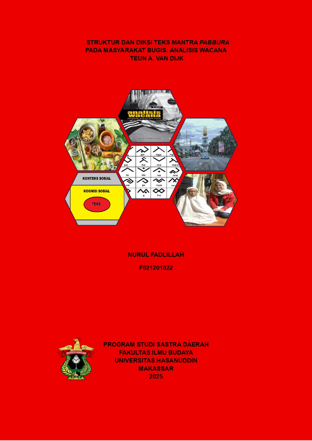 FADLILLAH, NURUL (2025) Struktur Dan Diksi Teks Mantra Pabbura Pada Masyarakat Bugis: Analisis Wacana van Dijk = Structure and Diction text of Pabbura Spells in Bugis Community: van Dijk Discourse Analysis. Skripsi thesis, Universitas Hasanuddin.