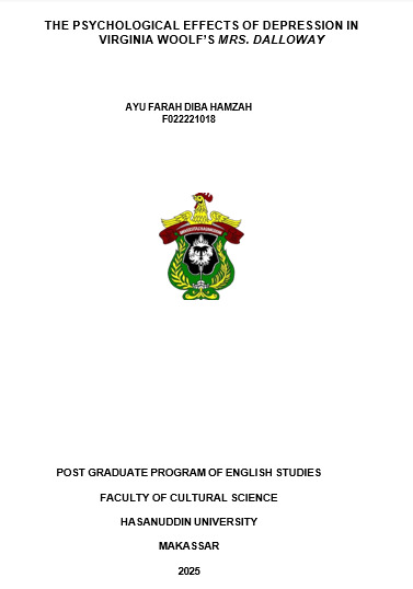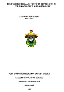 HAMZAH, AYU FARAH DIBA (2025) DAMPAK PSIKOLOGIS DEPRESI PADA MRS. DALLOWAY KARYA VIRGINIA WOOLF = THE PSYCHOLOGICAL EFFECTS OF DEPRESSION IN VIRGINIA WOOLF’S MRS.DALLOWAY. Skripsi thesis, Universitas Hasanuddin.