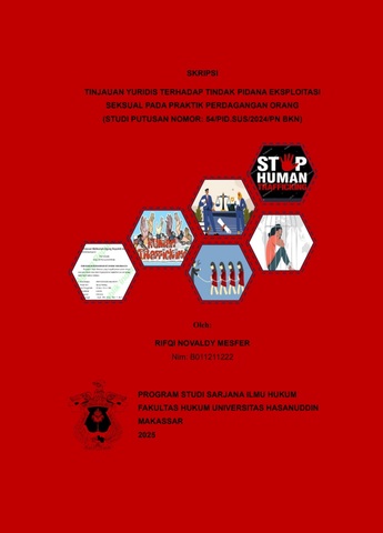 MESFER, RIFQI NOVALDY (2026) TINJAUAN YURIDIS TERHADAP TINDAK PIDANA EKSPLOITASI PADA PRAKTIK PERDAGANGAN ORANG (STUDI PUTUSAN NOMOR: 54/PID.SUS/2024/PN BKN) = Juridical Review of the crime of Exploitation Sex in the Practice of Human Trafficking (Case Study of Decision No.54/Pid. Sus/2024 Pn Bkn). Skripsi thesis, UNIVERSITAS HASANUDDIN MAKASSAR.