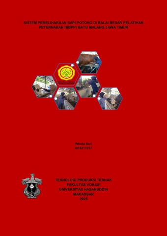 SARI, WINDA (2025) SISTEM PEMELIHARAAN SAPI POTONG DI BALAI BESAR PELATIHAN PETERNAKAN (BBPP) BATU MALANG JAWA TIMUR = BEEF CATTLE REARING SYSTEM AT THE NATIONAL ANIMAL HUSBANDRY TRAINING CENTER BATU MALANG WEST JAVA. Skripsi thesis, Universitas Hasanuddin.