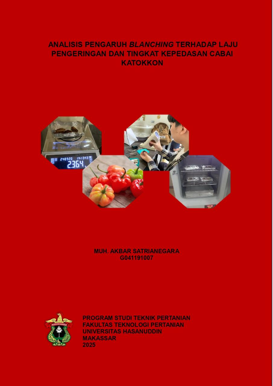 Satrianegara, Muh Akbar (2025) Analisis Pengaruh Blanching terhadap Laju Pengeringan dan Tingkat Kepedasan Cabai Katokkon = Analysis Of The Effect Of The Blanching On The drying Rate and Spiciness Of Katokkon Chili. Skripsi thesis, Universitas Hasanuddin.