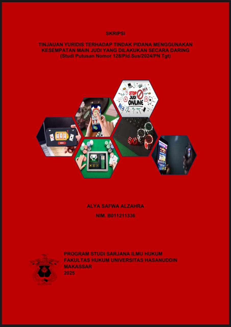 ALZAHRA, ALYA SAFWA (2025) TINJAUAN YURIDIS TERHADAP TINDAK PIDANA MENGGUNAKAN KESEMPATAN MAIN JUDI YANG DILAKUKAN SECARA DARING (Studi Putusan Nomor 128/Pid.Sus/2024/PN Tgt) = Legal Review of Criminal Acts Using Online Gambling Opportunities (Study of Decision Number 123/Pid.Sus/2024/Pn Tgt). Skripsi thesis, UNIVERSITAS HASANUDDIN MAKASSAR.