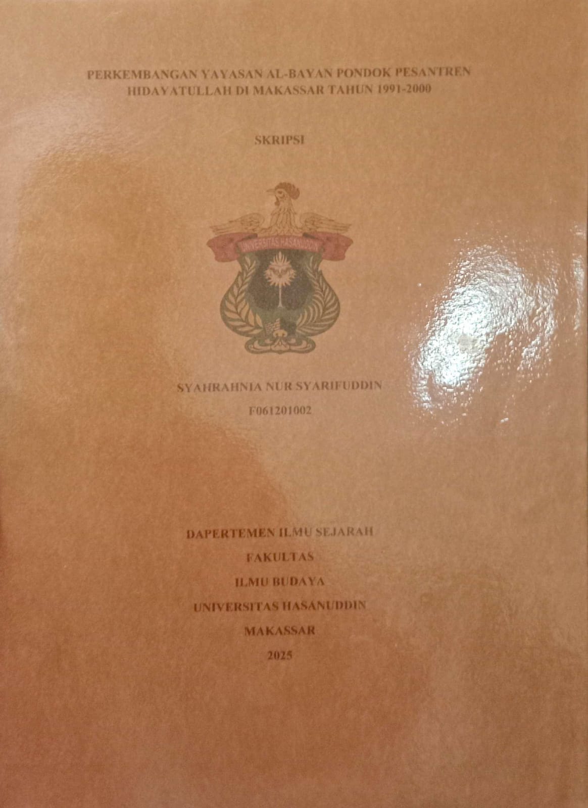 SYARIFUDDIN, SYAHRAHNIA NUR (2025) PERKEMBANGAN YAYASAN AL-BAYAN PONDOK PESANTREN HIDAYATULLAH DI MAKASSAR TAHUN 1991-2000 = DEVELOPMENT OF THE AL-BAYAN FOUNDATION OF THE HIDAYATULLAH ISLAMIC BOARDING SCHOOL IN MAKASSAR 1991-2000. Skripsi thesis, Universitas Hasanuddin.