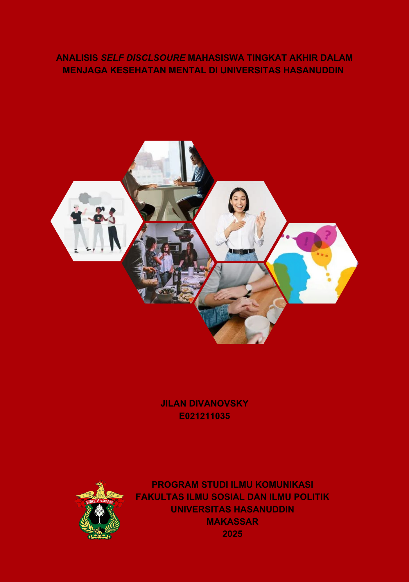 DIVANOVSKY, JILAN (2025) Analisis Self Disclosure Mahasiswa Tingkat Akhir Dalam Menjaga Kesehatan Mental di Universitas Hasanuddin = Analysis of Final-Year Students' Self-Disclosure in Maintaining Mental Health at Hasanuddin University. Skripsi thesis, UNIVERSITAS HASANUDDIN.