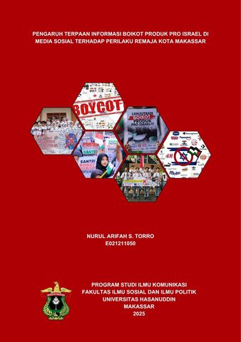 TORRO, NURUL ARIFAH S. (2025) PENGARUH TERPAAN INFORMASI BOIKOT PRODUK PRO ISRAEL DI MEDIA SOSIAL TERHADAP PERILAKU REMAJA KOTA MAKASSAR = THE INFLUENCE OF OF EXPOSURE TO BOYCOTT INFORMATION ON PRO ISRAEL PRODUCTS IN SOCIAL MEDIA ON THE BEHAVIOR OF TEENAGERS IN MAKASSAR CITY. Skripsi thesis, UNIVERSITAS HASANUDDIN.