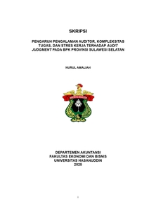 AMALIAH, NURUL (2025) PENGARUH PENGALAMAN AUDITOR, KOMPLEKSITAS TUGAS, DAN STRES KERJA TERHADAP AUDIT JUDGMENT PADA BPK PROVINSI SULAWESI SELATAN = THE INFLUENCE OF AUDITOR EXPERIENCE, TASK COMPLEXITY, AND WORK STRESS ON AUDIT JUDGMENT AT THE BPK OF THE SOUTHERN SULAWESI PROVINCE. Skripsi thesis, Universitas Hasanuddin.