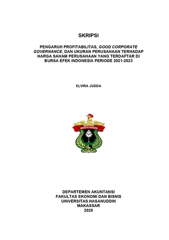JUDDA, ELVIRA (2025) Pengaruh Profitabilitas, Good Corporate Governance, dan Ukuran Perusahaan terhadap Harga Saham Perusahaan yang Terdaftar di Bursa Efek Indonesia Periode 2021-2023 = The Effect of Profitability, Good Corporate Governance, and Firm Size on Stock Prices of Companies Listed on the Indonesia Stock Exchange During the 2021–2023 Period. Skripsi thesis, Universitas Hasanuddin.